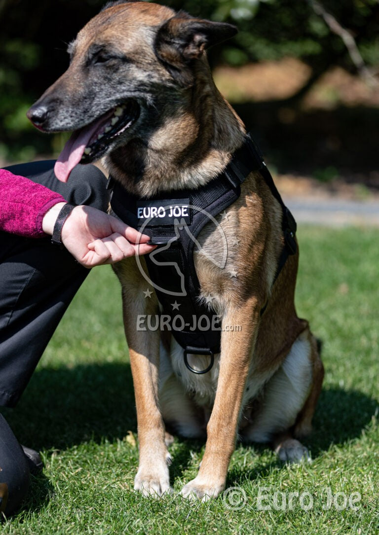 Su diseño incluye un asa ergonómica trasera que permite un control inmediato del perro o brindar apoyo físico en maniobras exigentes. Cuenta con dos anillas metálicas superiores, una frontal y otra trasera, para adaptar el uso de la correa según la necesidad: control, paseo o entrenamiento operativo. Además, dispone de dos anillas inferiores, perfectas para entrenamiento de rastreo o ejercicios de arrastre ligero.